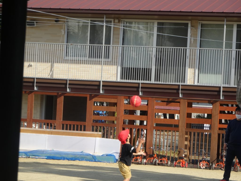 今日も、給食後、少し部屋でゆっくりと過ごしていましたが、天気もいいので園庭に出てボールあそび等を楽しんでいました。
