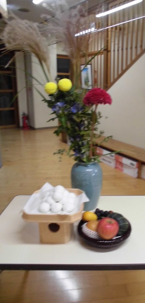 といって、ススキやおだんご、今年とれた野菜やくだものをお供えして、月を眺めながら、