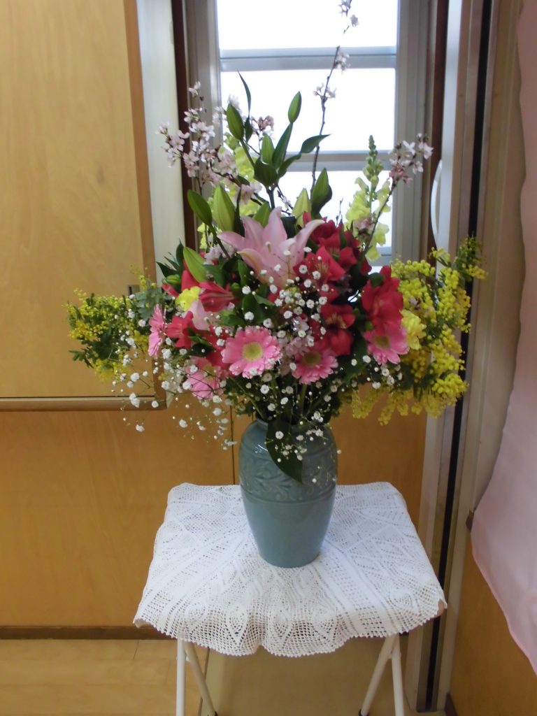 職員がお花を活けてくれました
