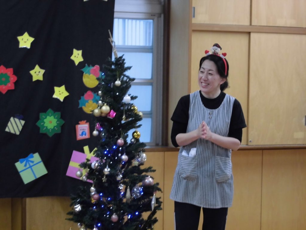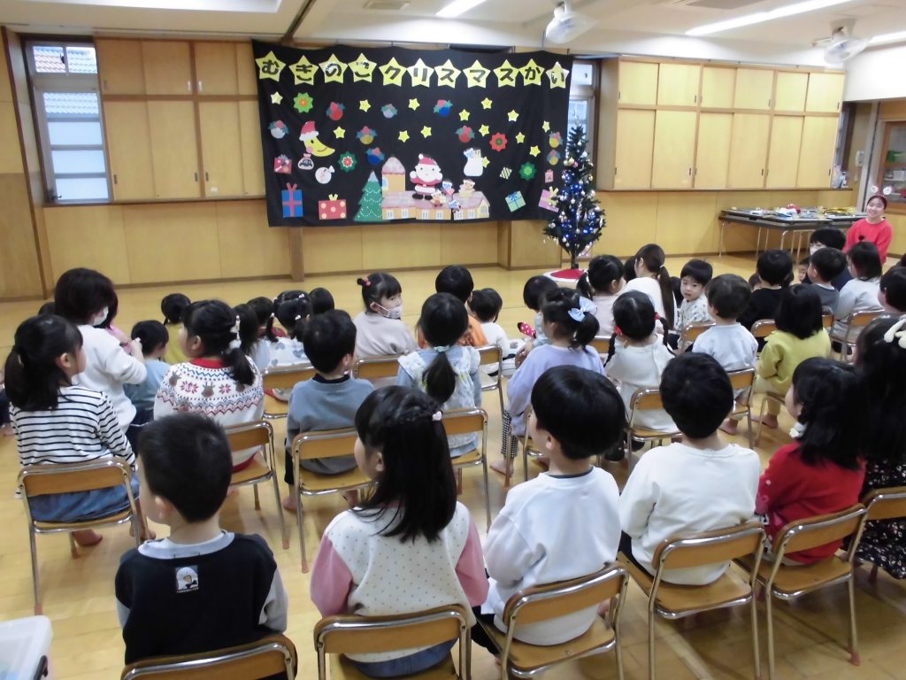 子どもたちがホールに集まりクリスマス会を楽しみました。