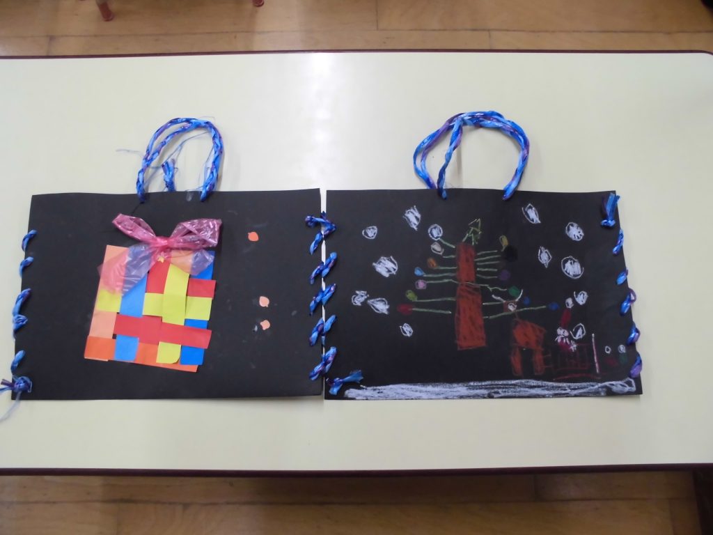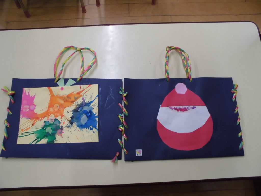 麦の子保育園では各クラス、サンタさんからのプレゼントを入れる袋を子どもたちが作っています。