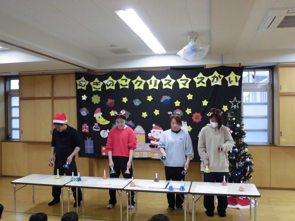 出しものは、職員によるハンドベル「 サンタが街にやってくる」「ウィーウィッシュアメリークリスマス でした!! 」