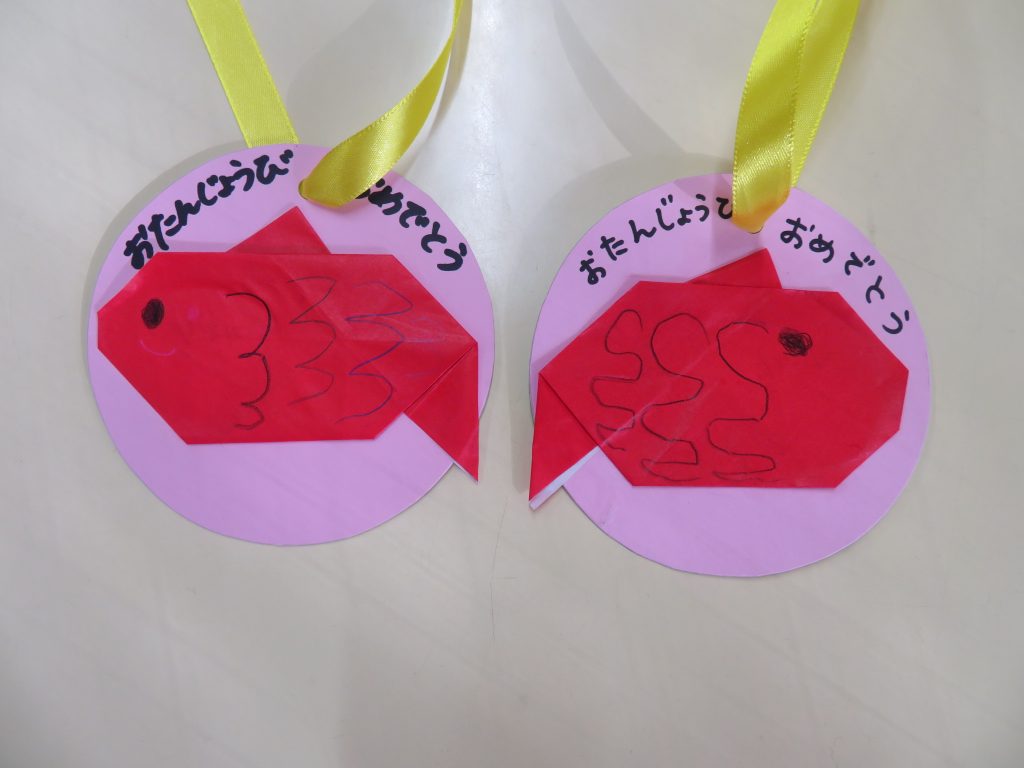 月ごとに折り紙制作は変わります。1月は「 たい 」です。