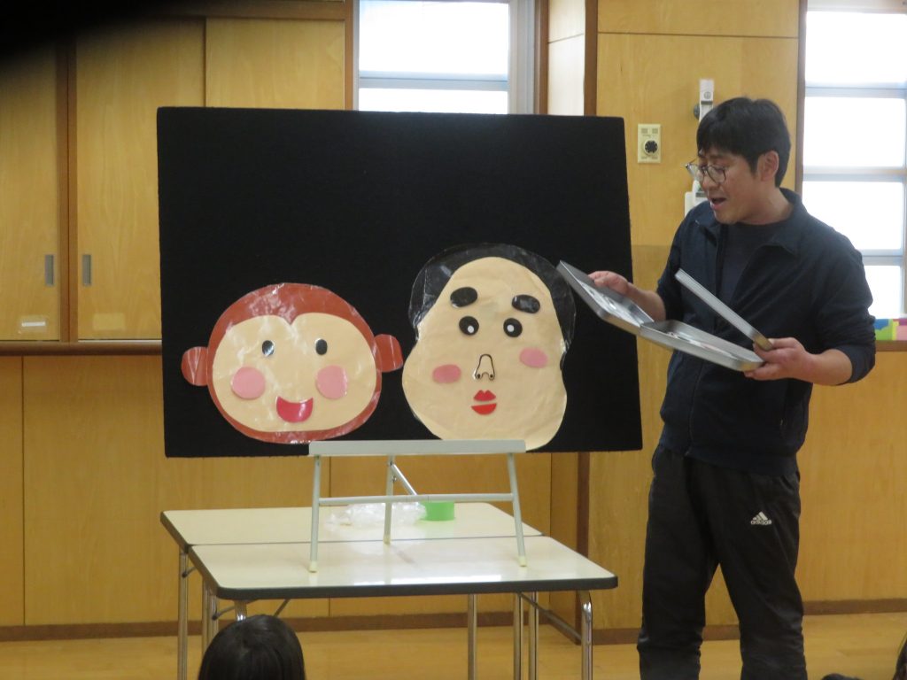 1月の誕生日会の職員の出しものは、「 福笑い 」でした