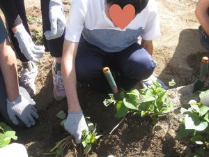 さつま芋が見えると「出てきたよ!」と嬉しそうな表情で、抜く事ができました。