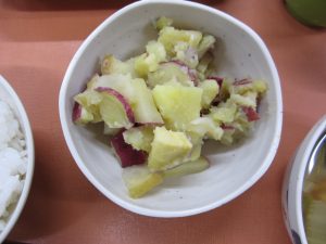 収穫したさつま芋は施設に持ち帰り、10月10日の昼食「りんごとさつま芋の重ね焼き」として、