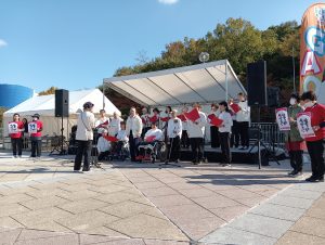 追伸:「コスモス」の家族や仲間・職員・関係者で構成される「コスモスコーラス」、そして「ふれあいの里かたくら」に通所する仲間や家族で構成される「かたくら○」。共に「GAOフェス」のステージに出演。素敵な歌声と演奏を披露し、昨年亡くなられた仲間が書いた書「生きてる 生きてく」のメッセージをアピールしながら、「暮らし」を支える支援の必要性を訴えてくれました♪