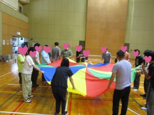 最後は音楽に合わせてパラバルーンを行い、笑顔の花が咲きました。